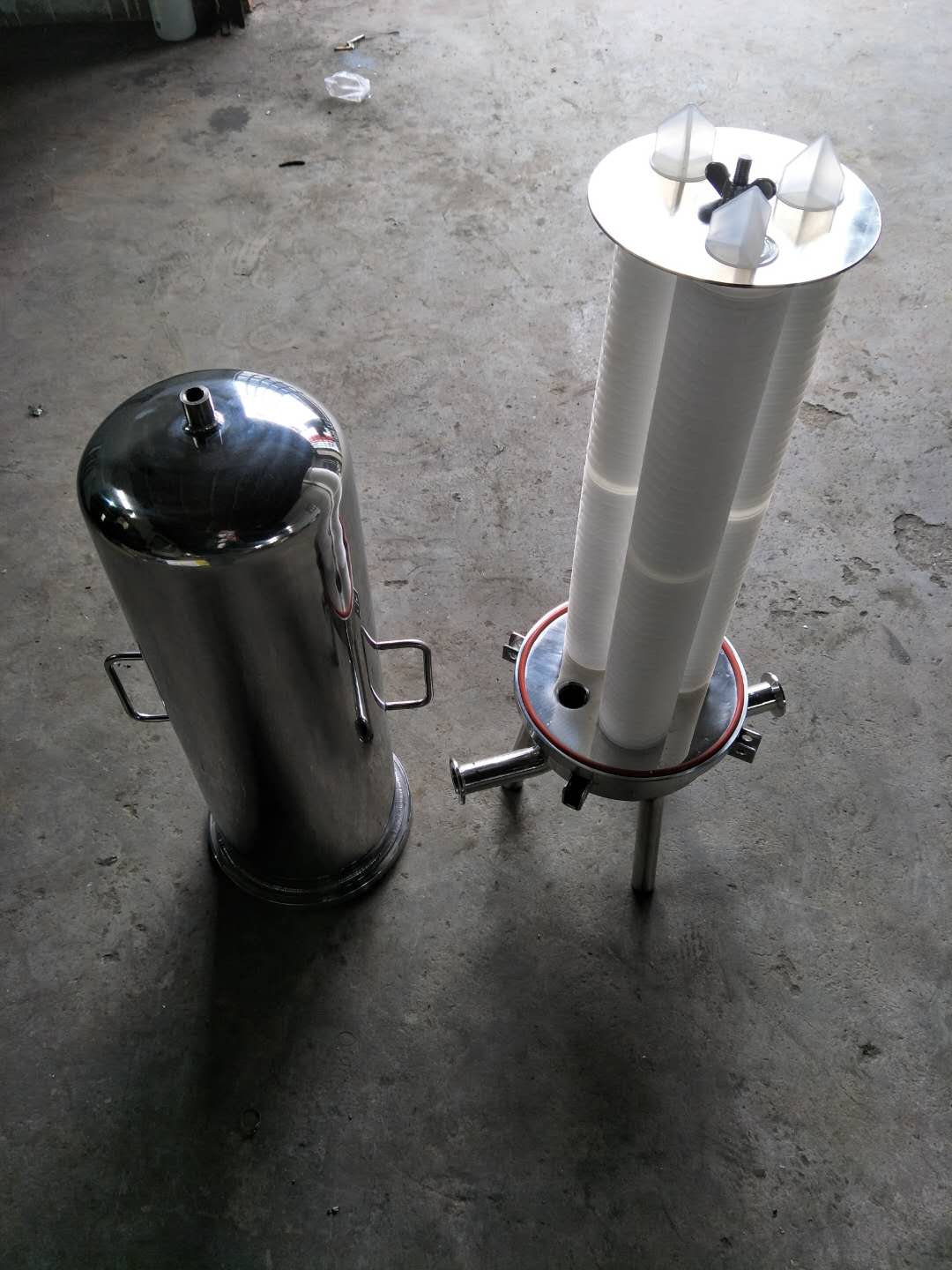 精密过滤器又称(保安过滤器)筒体外壳一般采用不锈钢材质制造,内部采用PP熔喷、线烧、折叠、钛滤芯、活性炭滤芯等管状滤芯作为过滤元件,根据不同的过滤介质及设计工艺选择不同的过滤元件,以达到出水水质的要求。机体也可选用快装式,以方便快捷的更换滤芯及清洗。