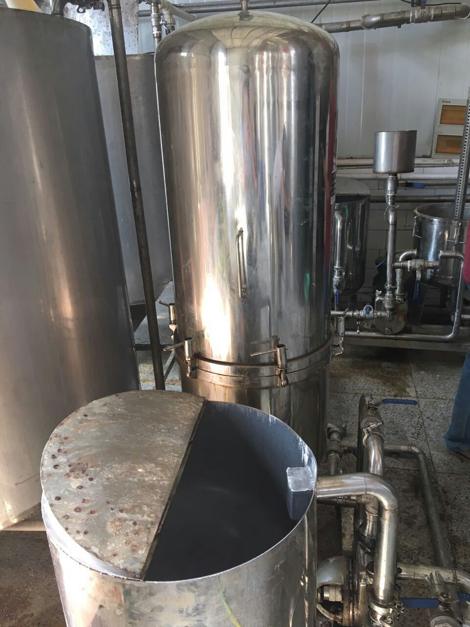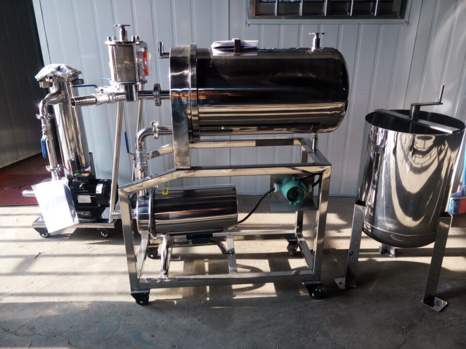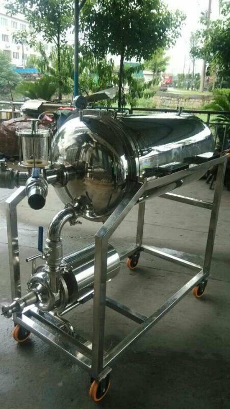 连体带泵本设备由壳体、中间轴、过滤板、过滤网、导杆、气阀、玻璃视镜、胶轮等件组成,所有液体接触的机件,均采用不锈钢材料制成,壳体分为多节、单节、节间用橡胶密封圈密封,便于拆卸清洗。